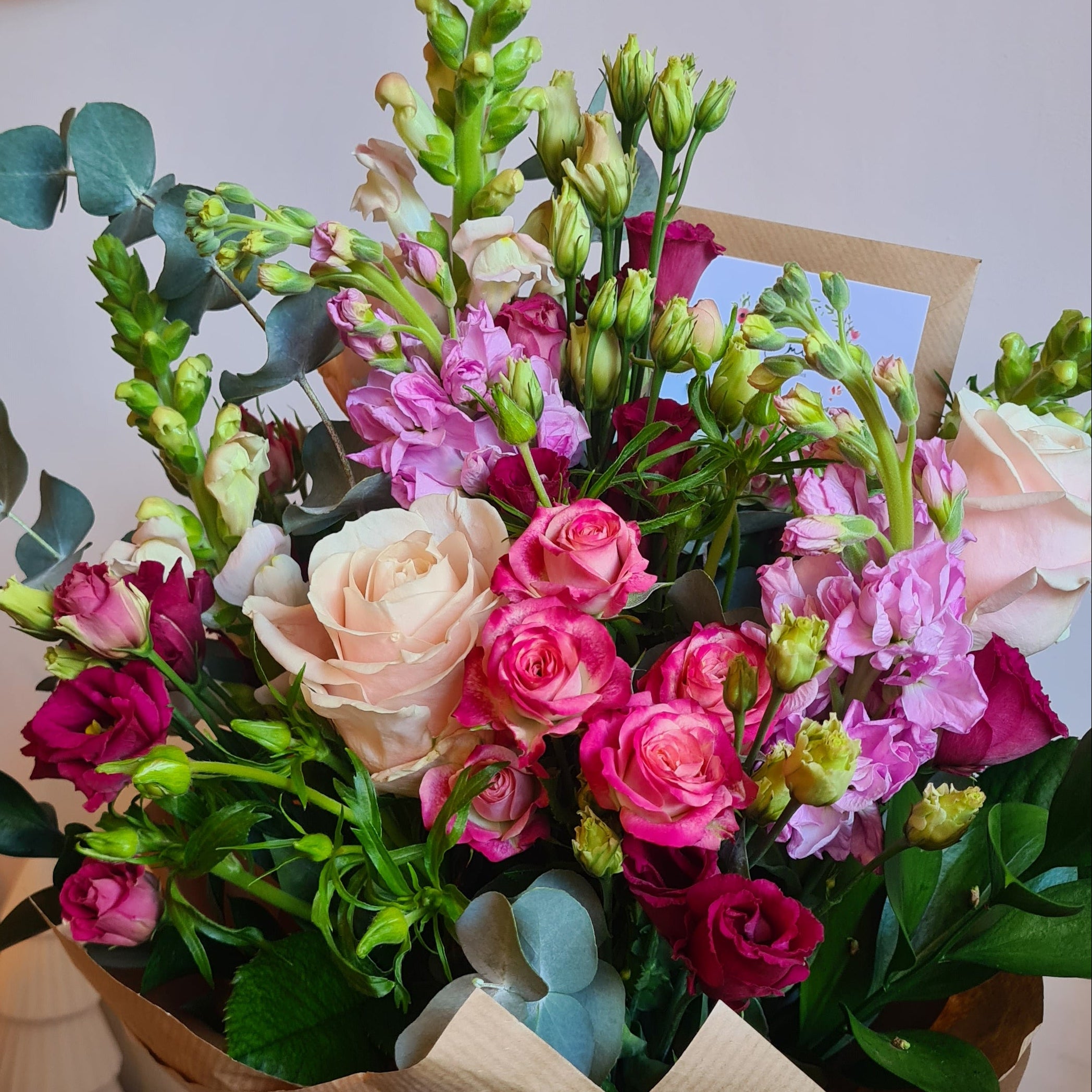 With Valentines midway through, February is the month for a little love and appreciation and celebration! Our bouquet of the month is bursting with pretty pink tones in all our favourite flowers of the season. You'll find Stocks, Roses, Spray Roses, Snapdragons, Eustoma and Butterfly Ranunculus delicately arranged ready to charm!